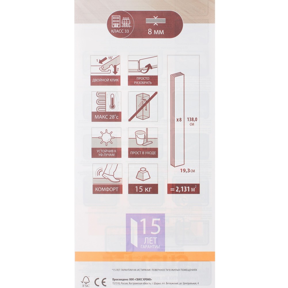 | Тип упаковки | 4 фаски, для эффекта паркетной доски |