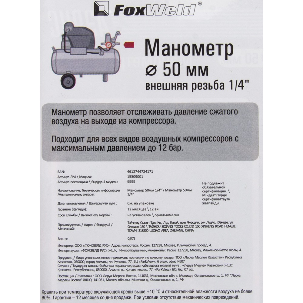 | Тип продукта | Манометр |