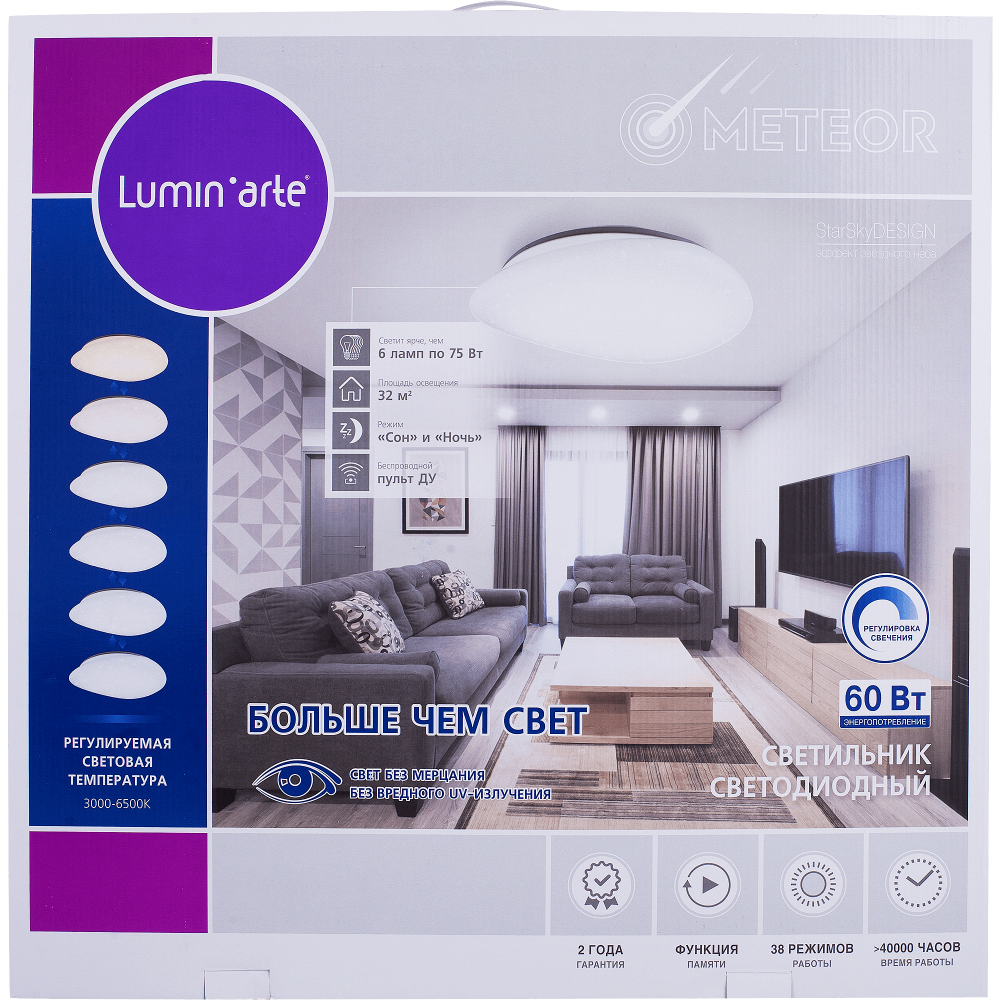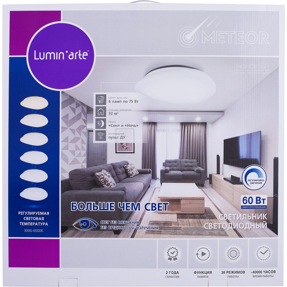 | Цвет освещения | Смена от теплого белого до холодного белого |