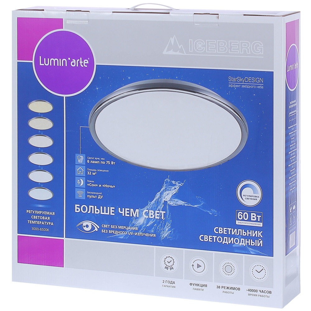 | Цвет освещения | Смена от теплого белого до холодного белого |