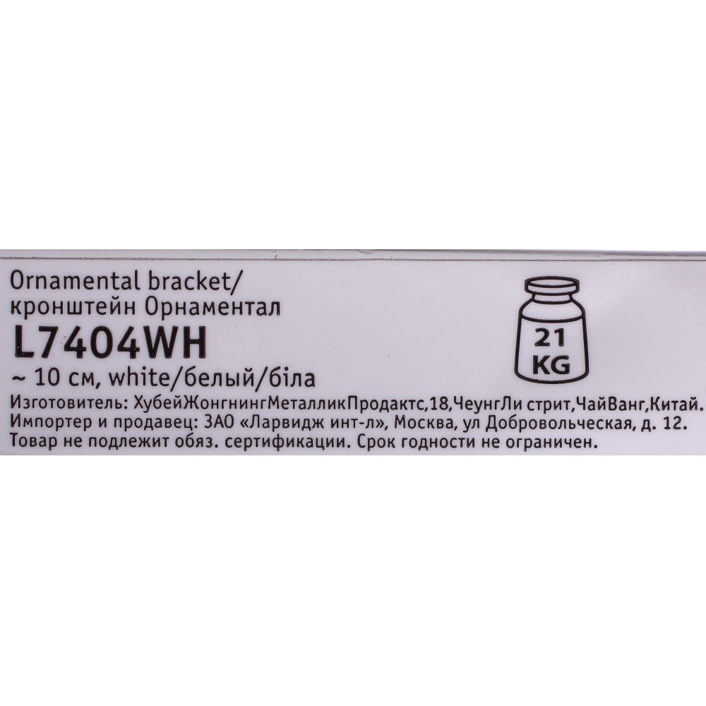 | Максимальная нагрузка на пару кронштейнов ( кг ) | 21 |