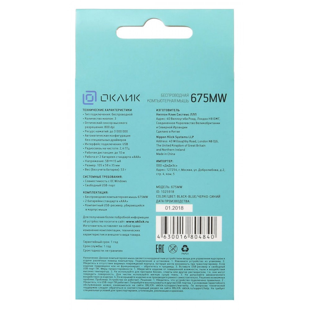 | Сайт производителя | www.oklick.ru |