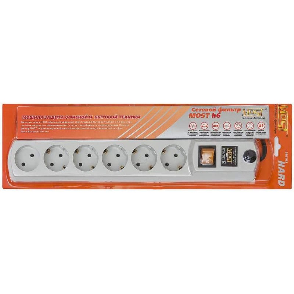 сетевой фильтр, 6 розеток, длина кабеля: 5 м