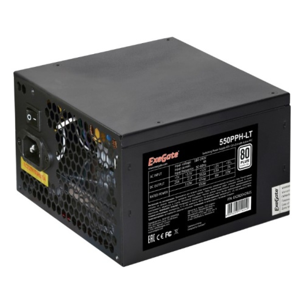 550W Exegate 550PPH-LT-OEM, 80+, ATX, black, APFC, 12cm, 24p, (4+4)p, 5*SATA, 3*IDE