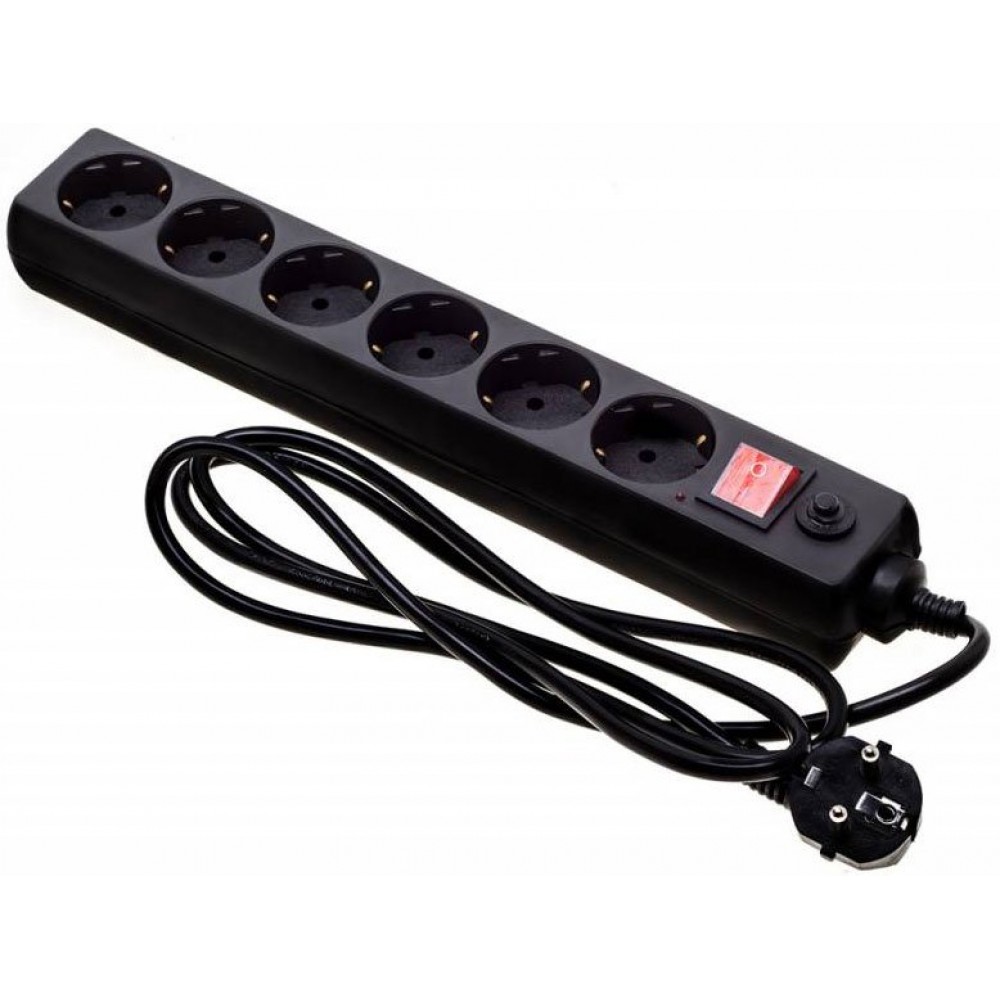 сетевой фильтр, 6 розеток, 1.8 м, чёрный