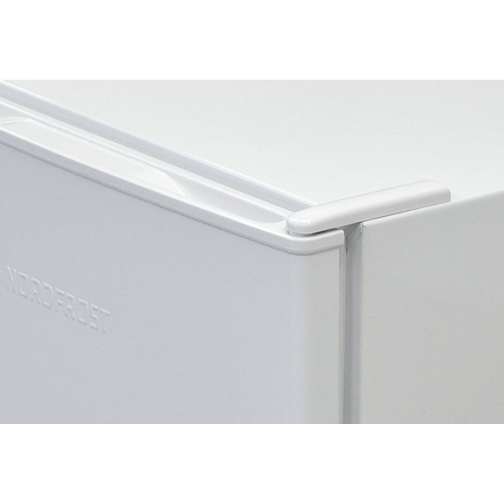 Холодильник NORDFROST NR 403 W обладает сверхкомпактными габаритами (86x50x53 см), но при этом вмещает достаточно большое количество провизии. Полезный объем морозильной камеры составляет 11 л. Холодильная камера представлена 3 полками, 2 из которых выполнены из стекла, и вмещает до 93 л продуктов.
