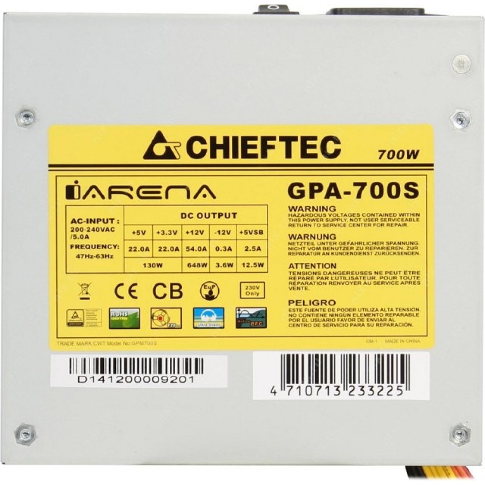 | Ток по линии | +3.3V - 22A, +5V - 22A, +12V1 - 54A, +5VSB - 2.5A, -12V - 0.3A |